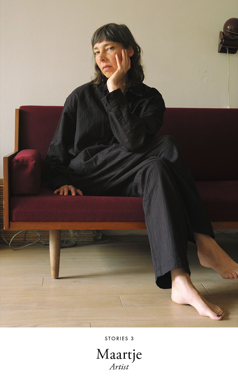 パリから移住し、ゲリット・リートフェルト・アカデミーで学んだMaartjeは、30年以上アムステルダムに暮らしています。日常は自身のアート制作と、彼女が運営するアーティスト・イニシアティブ「manyfold books」の活動に費やし、週末は息子と過ごしながら水泳でリフレッシュ。