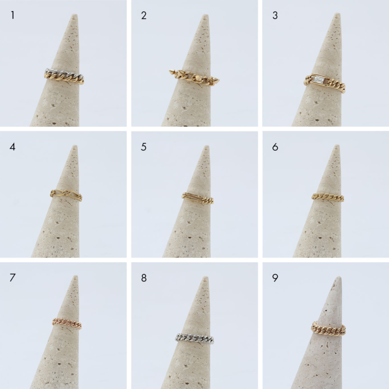 リングコレクションは、ブランドを象徴するチェーンデザインを中心に、繊細な造形と確かな職人技が息づくシリーズ。