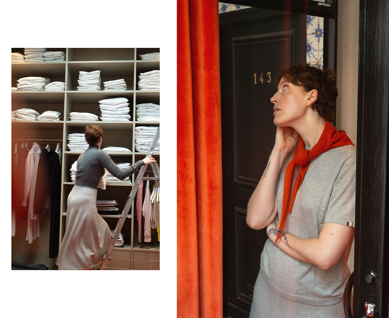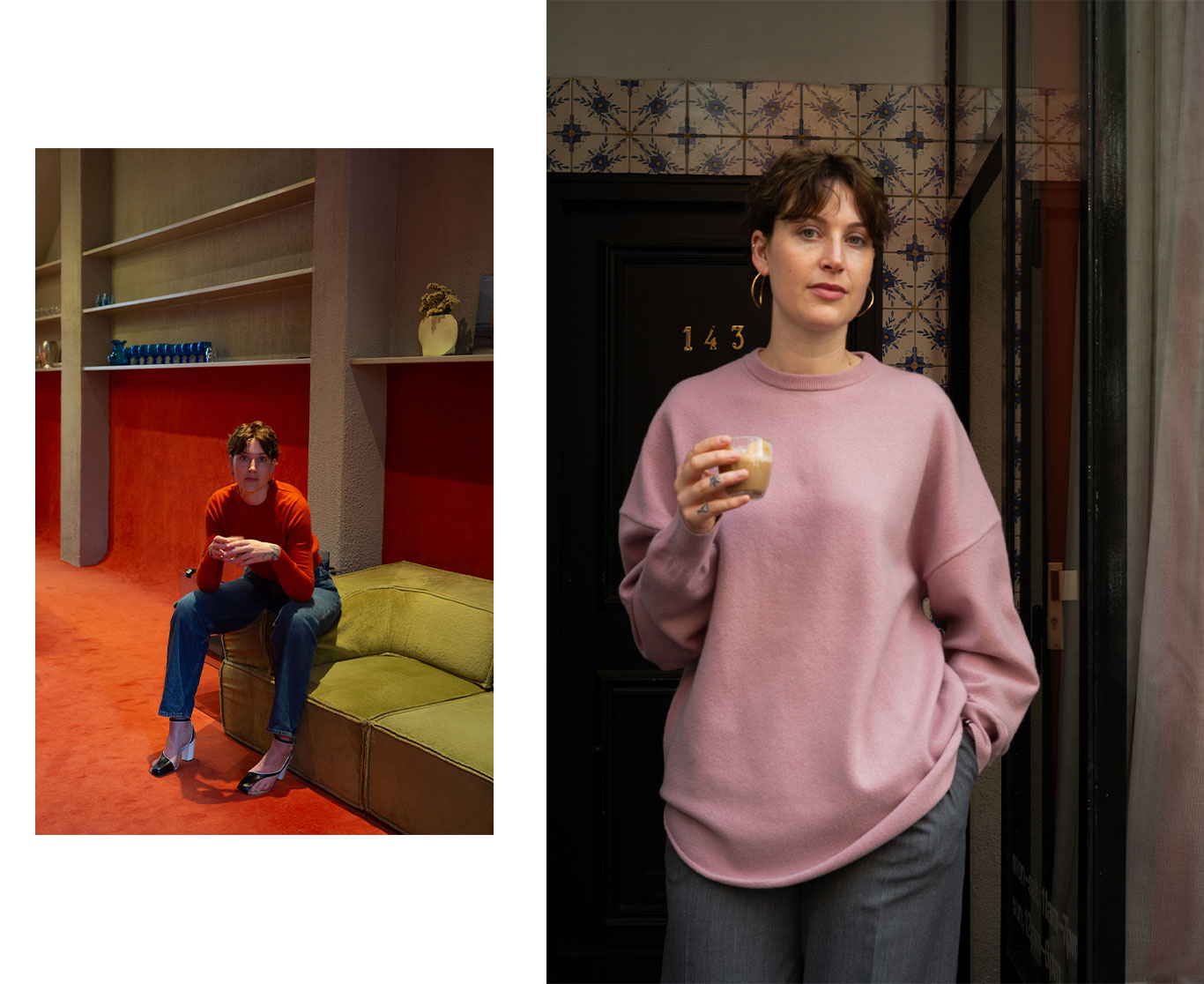 今回モデルとして登場したのは、extreme cashmere B.V.のヘッド・オブ・セールスであるNisse van Rossumです。彼女がまとうニットウエアは、この街の空気と深く共鳴し、アムステルダムのライフスタイルそのものを映し出しています。