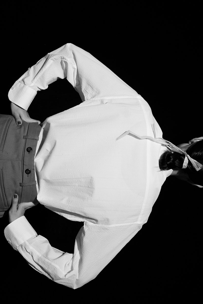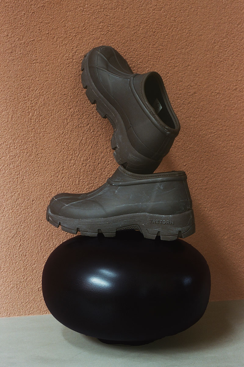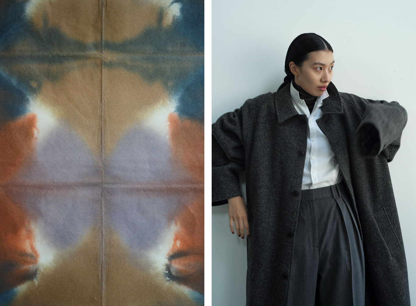 クラシックなウールやレザーに異素材の質感を重ね、伝統と未来が交差する新たなフォルムを描き出す。